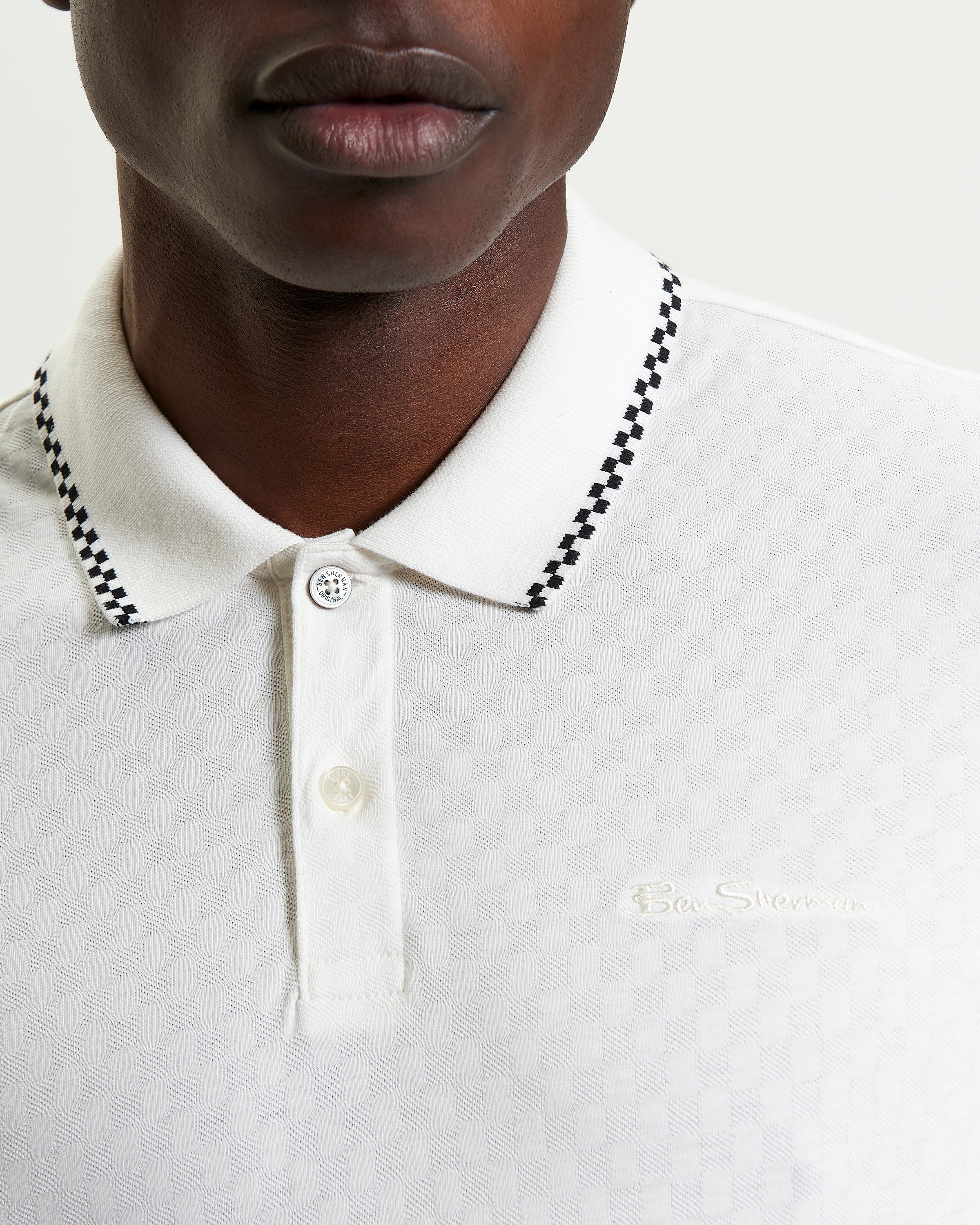 Ben Sherman Chequerboard Texture Polo - Snow White