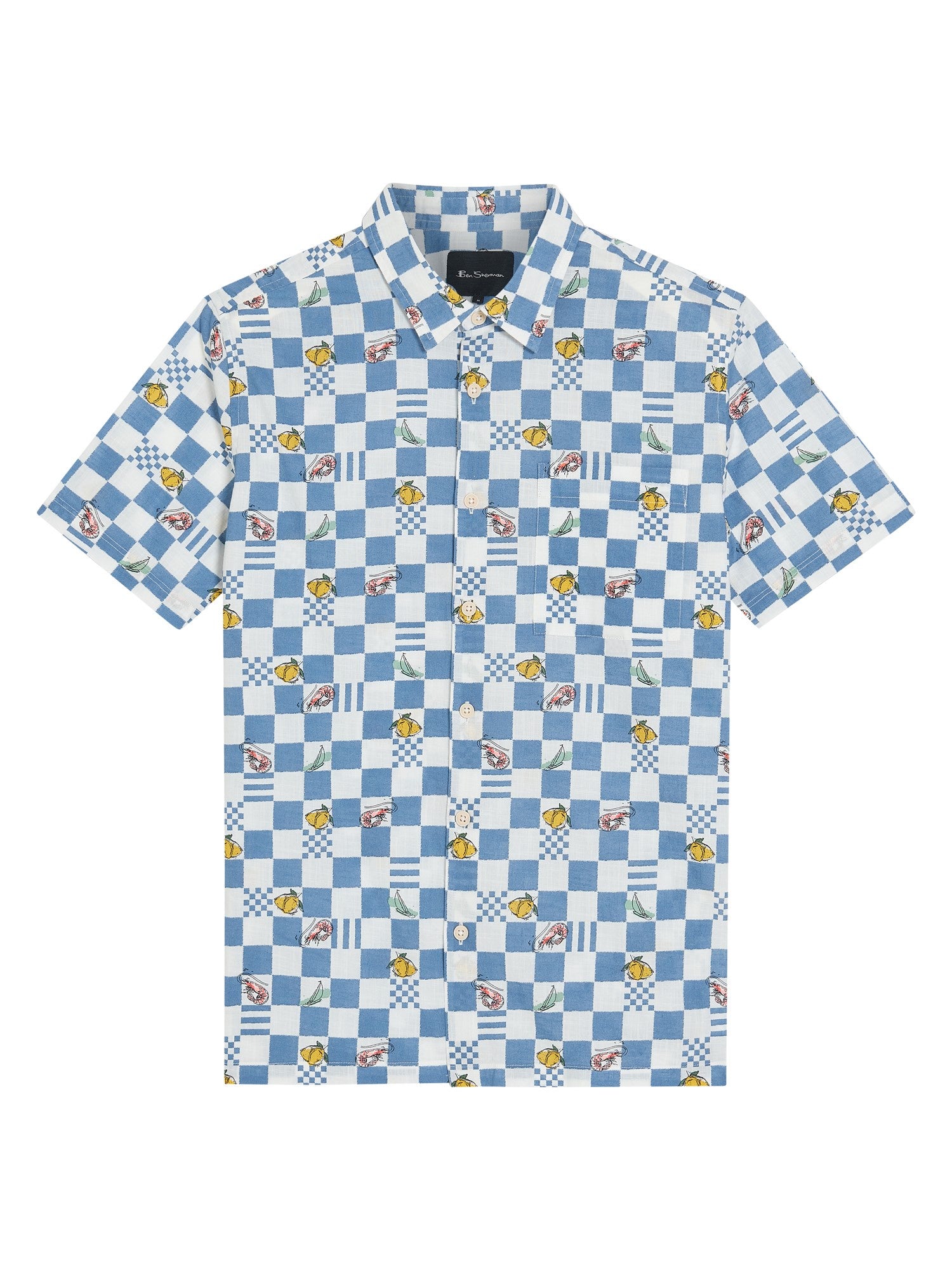 Ben Sherman Short Sleeve Shirt: Chequerboard Print - Snow White