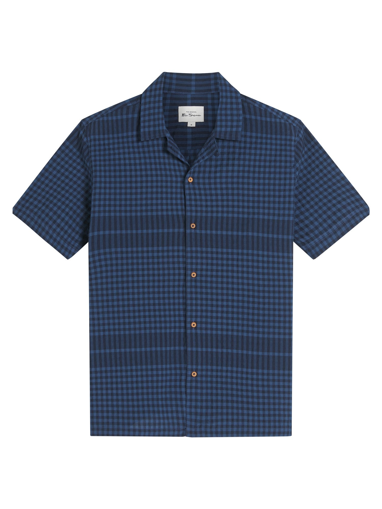 Ben Sherman Short Sleeve Shirt: Seersucker Gingham - Dark Navy