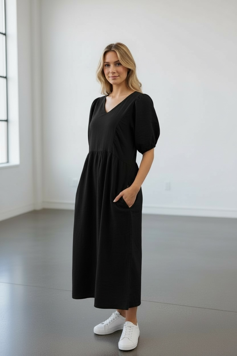 100% Italian Linen Cherub Dress in Black