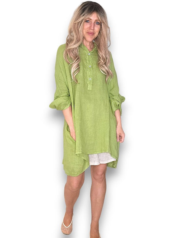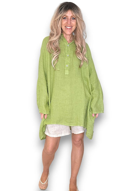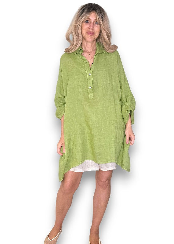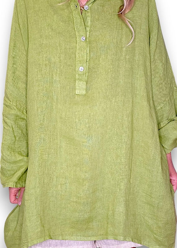 Helga May: Coastal Linen Tunic Shirt - Avocado