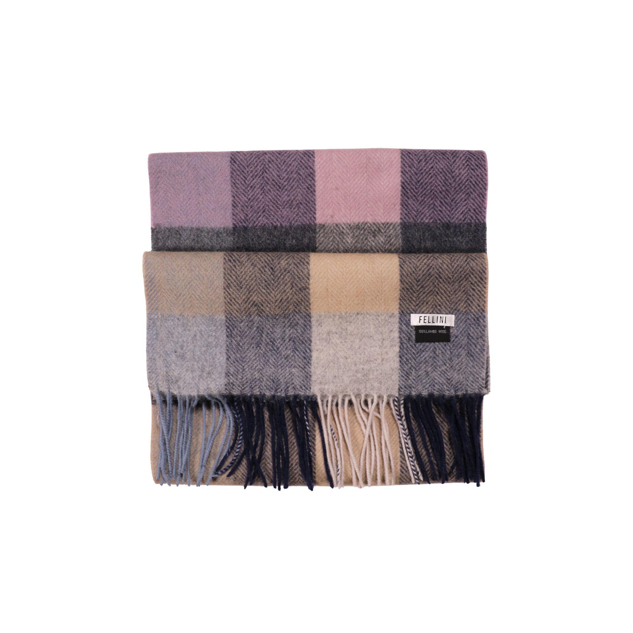 100% Lambs Wool Scarf - Lilac Beige Plaid