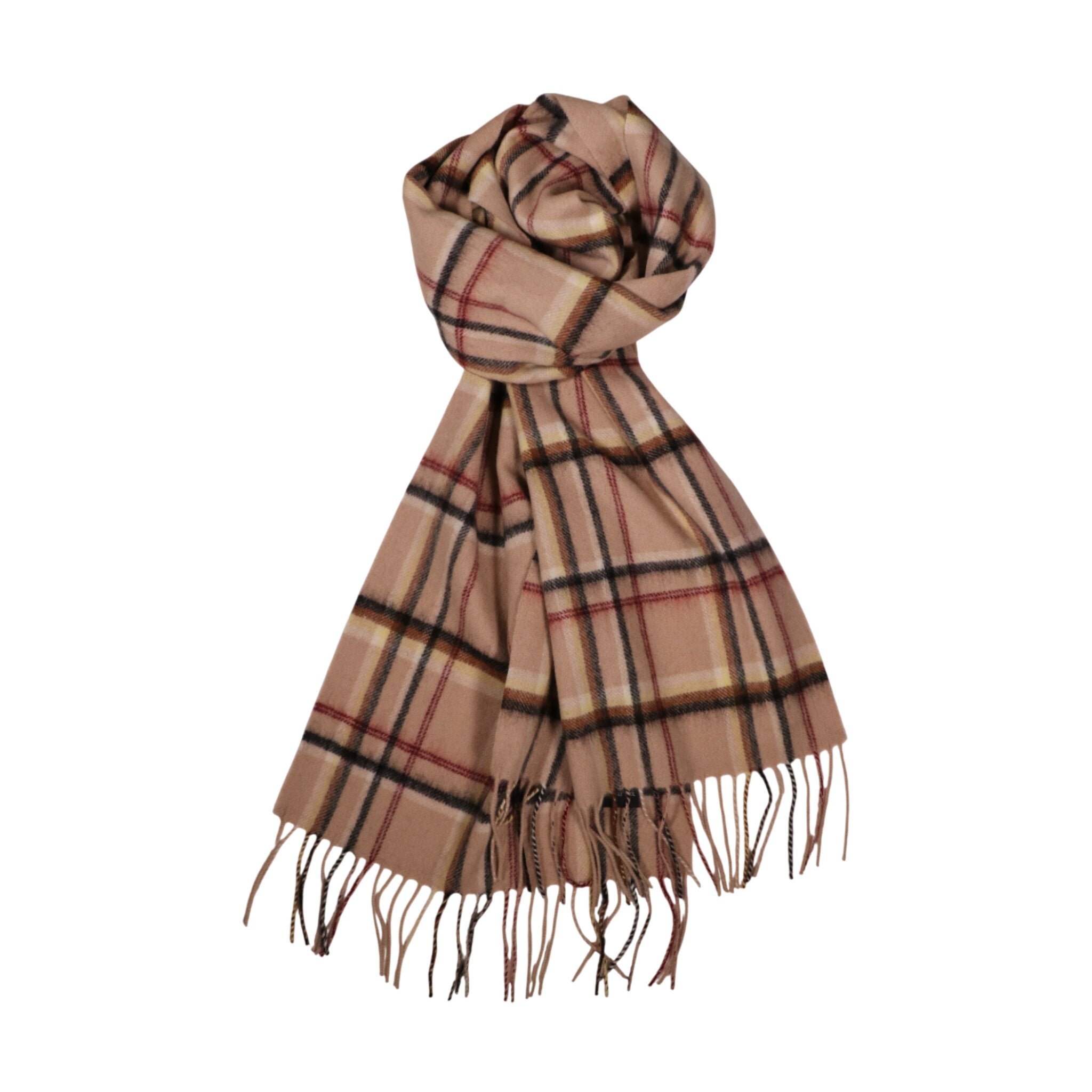 100% Lambs Wool Scarf - Red Beige Tartan
