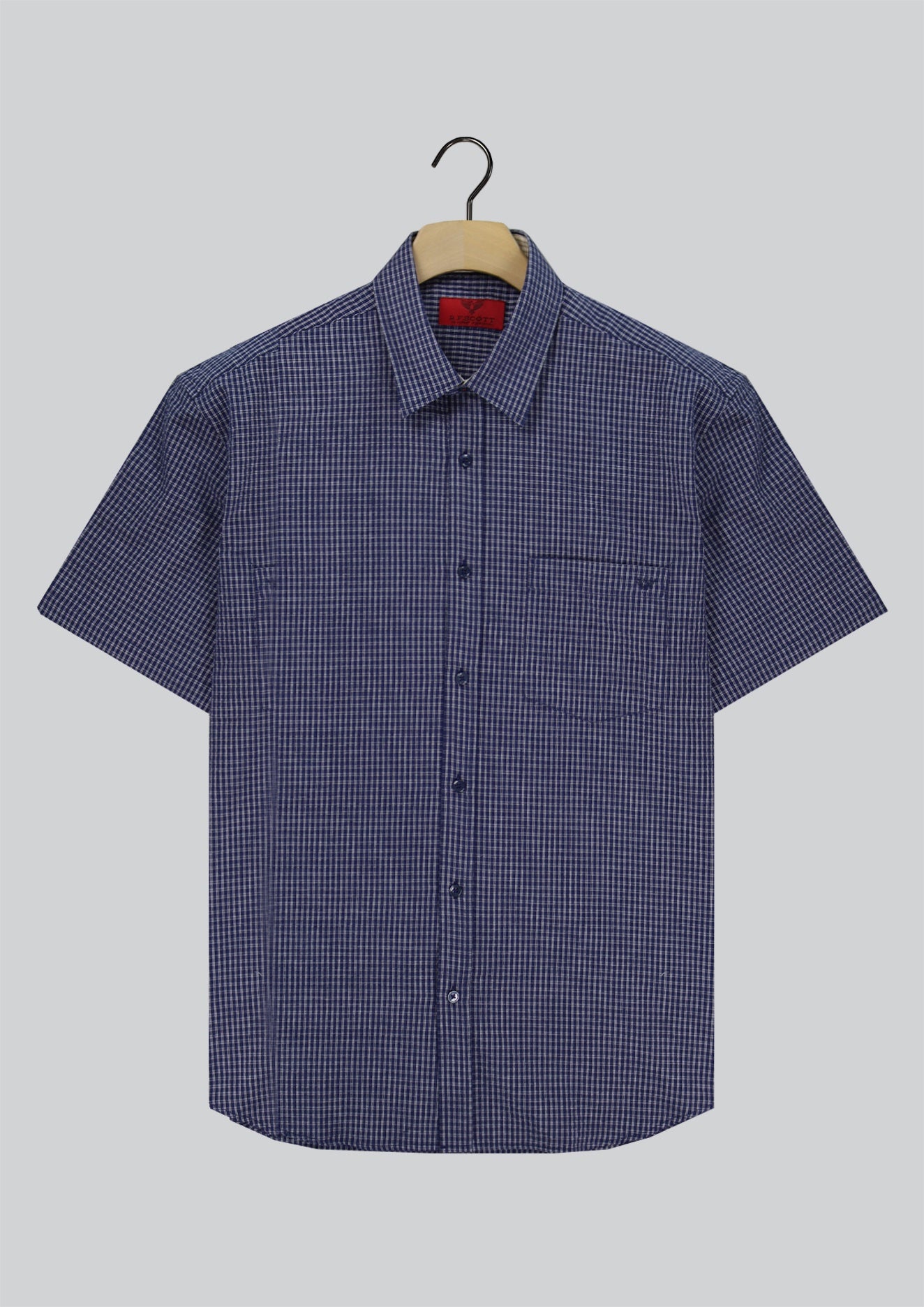 R.F. Scott Field Short Sleeve Shirt: Micro Check - Navy