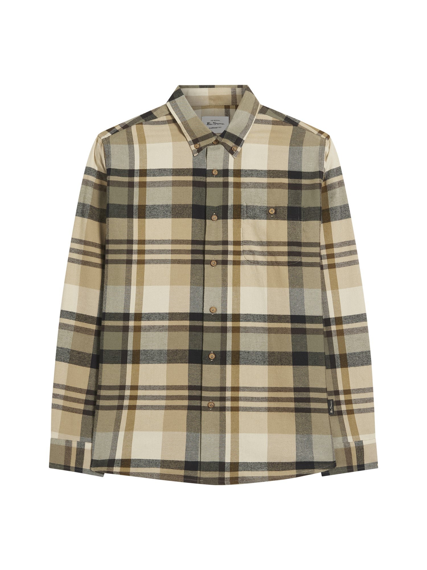 Ben Sherman Long Sleeve Shirt: Brushed Check - Sand