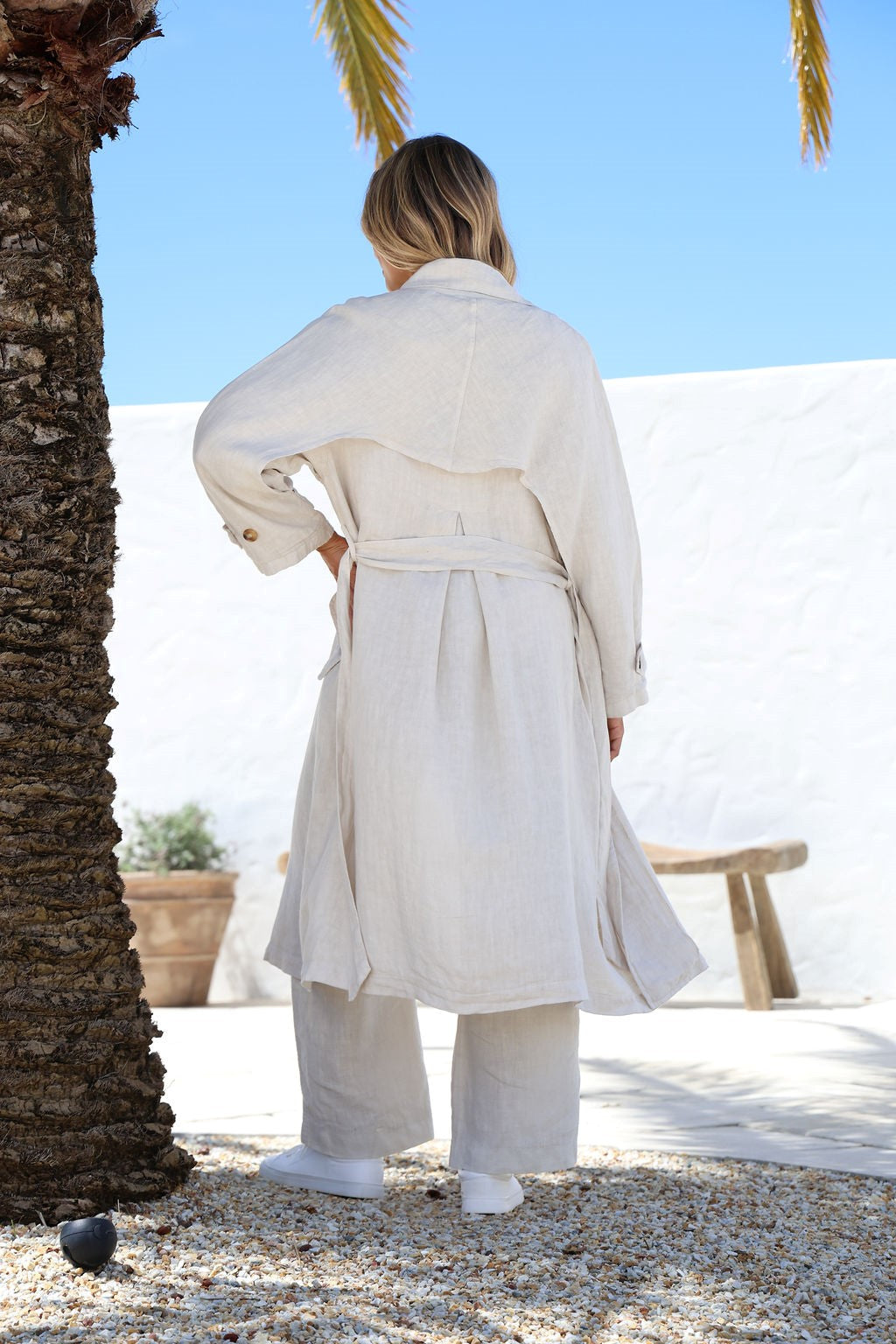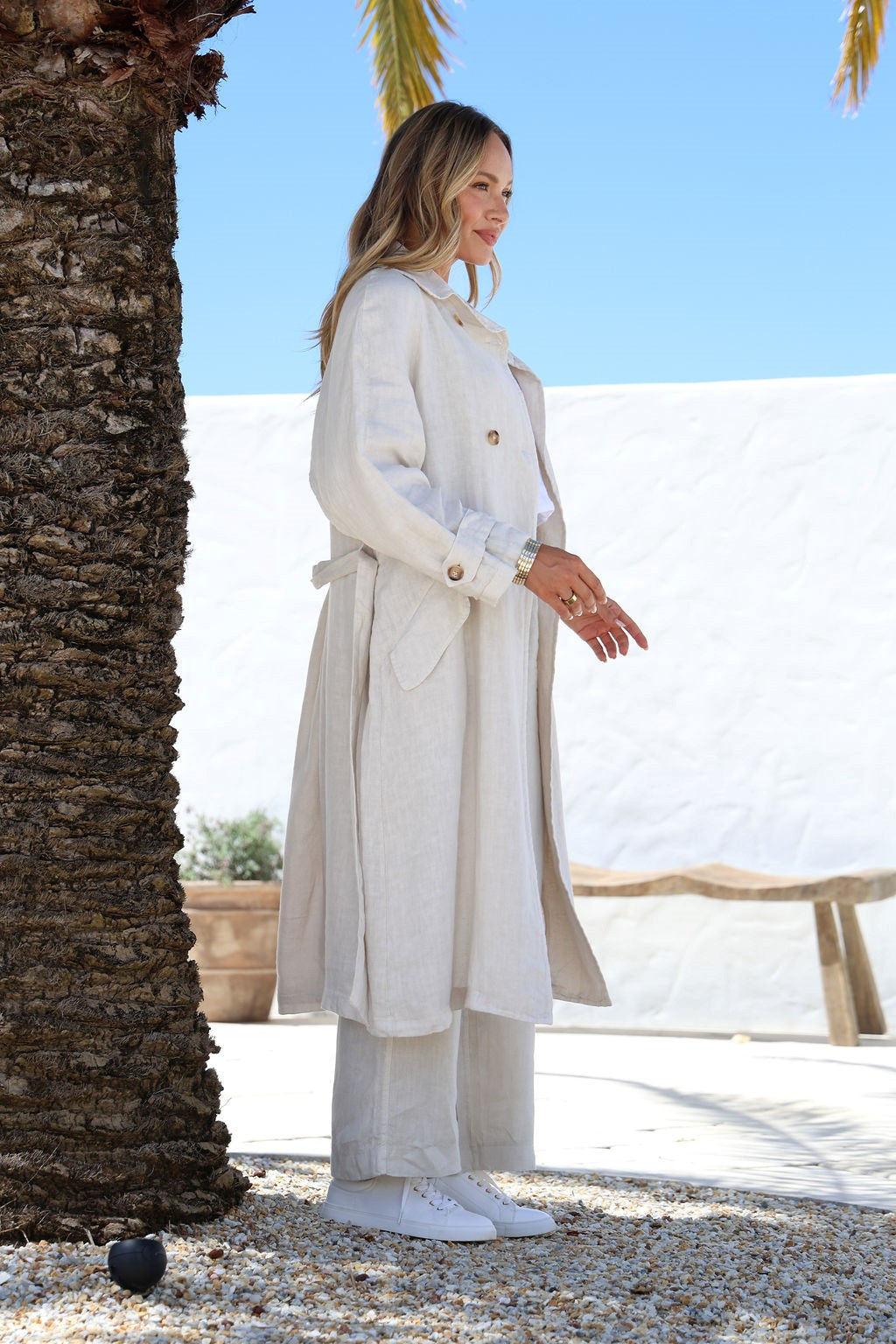 Silabare Linen Trench Coat in Sand