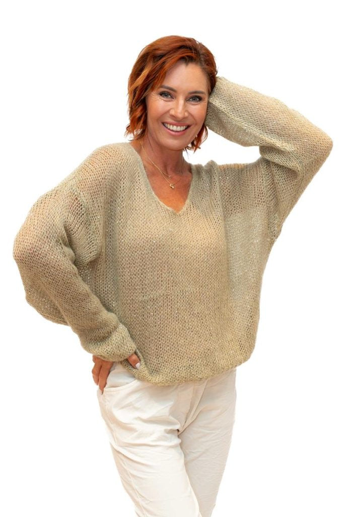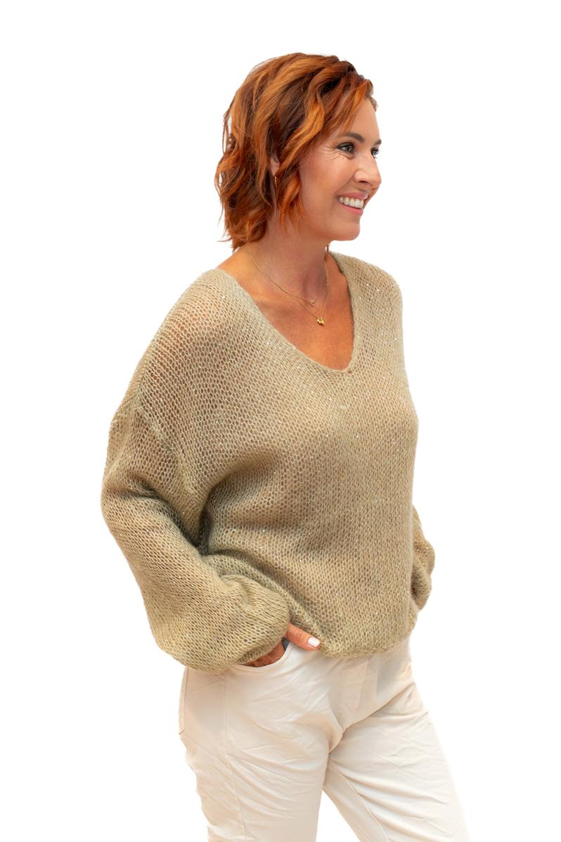The Italian Closet: Glint - Kid Mohair Mix Knit with Sequin in Camel