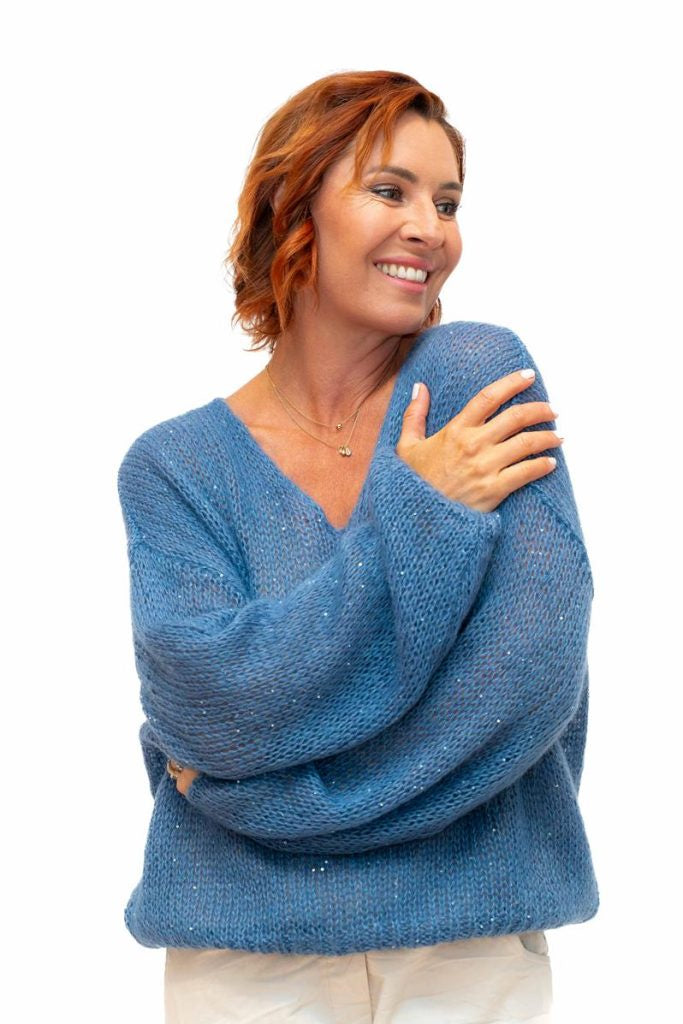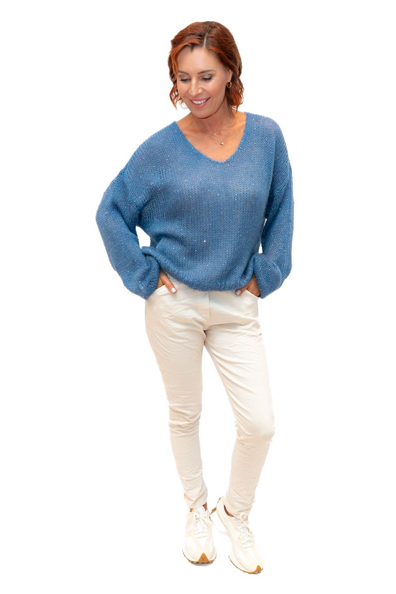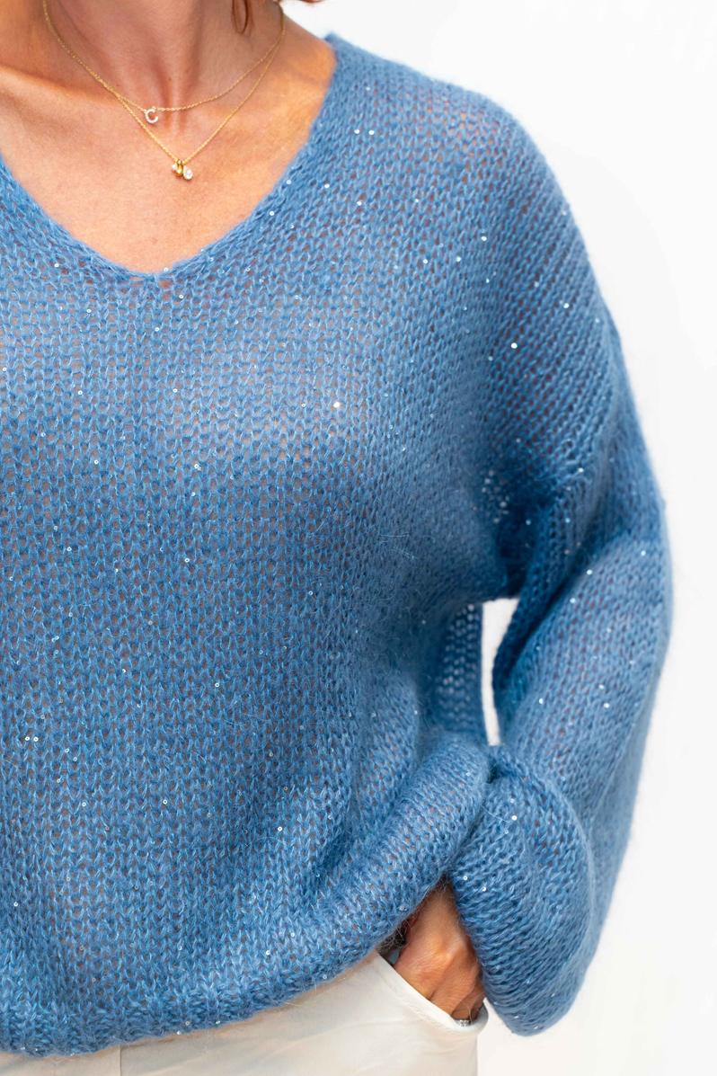 The Italian Closet: Glint - Kid Mohair Mix Knit with Sequin in Denim