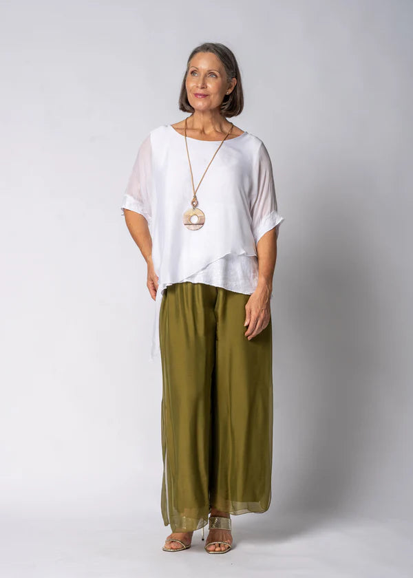The Danika Silk Top in White is a sophisticated addition to any modern wardrobe, designed to bring a hint of glamour to both day and evening ensembles. This elegant top is perfect for special occasions or whenever you want to feel effortlessly refined. Embrace the luxurious feel that only a silk top can provide, ensuring you look and feel sensational throughout the summer.