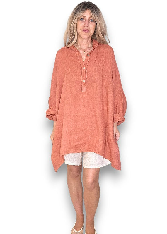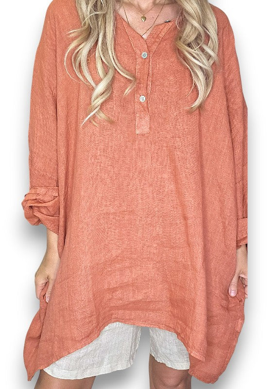 Helga May: Coastal Linen Tunic Shirt - Brick