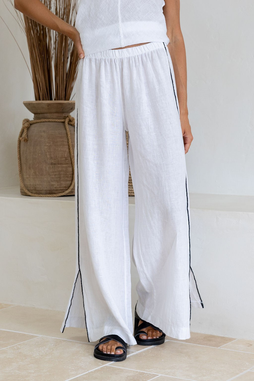 Ariosa Linen Pants in White