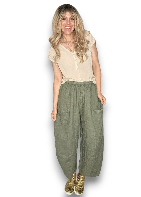 Helga May: Barrel Linen Pants - Forest