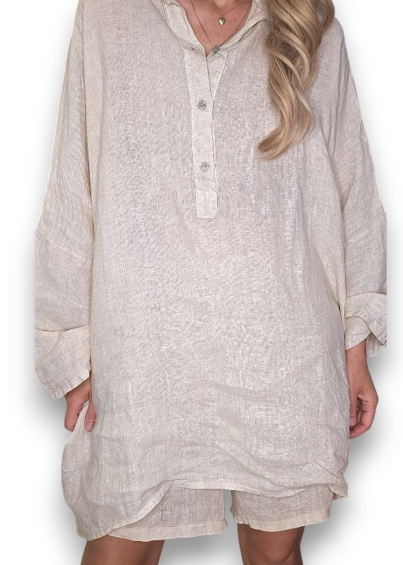 Helga May: Coastal Linen Tunic Shirt - Beige