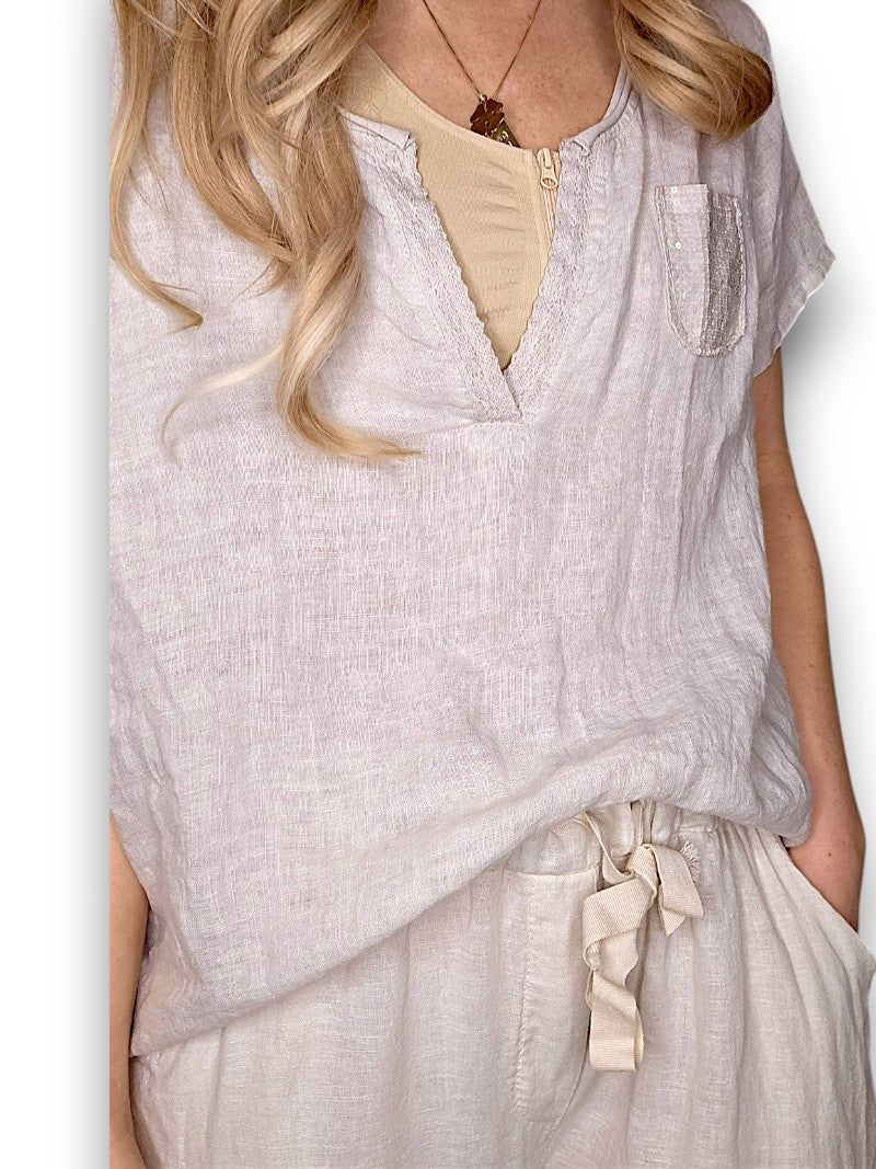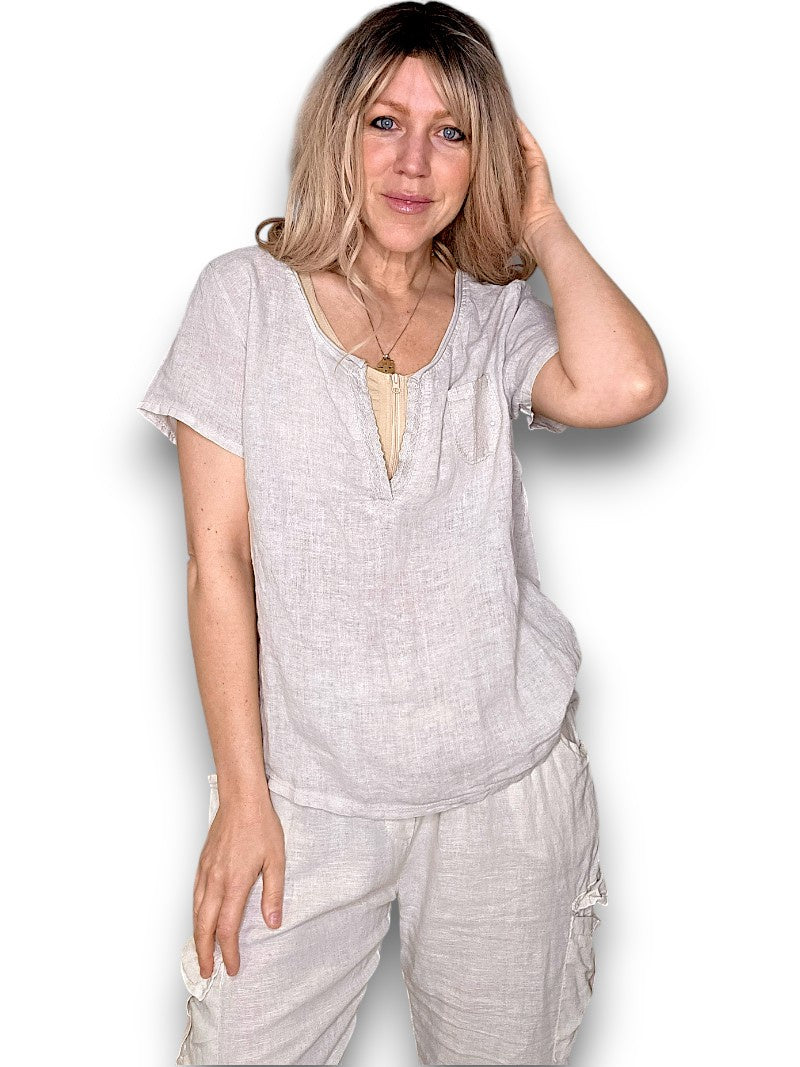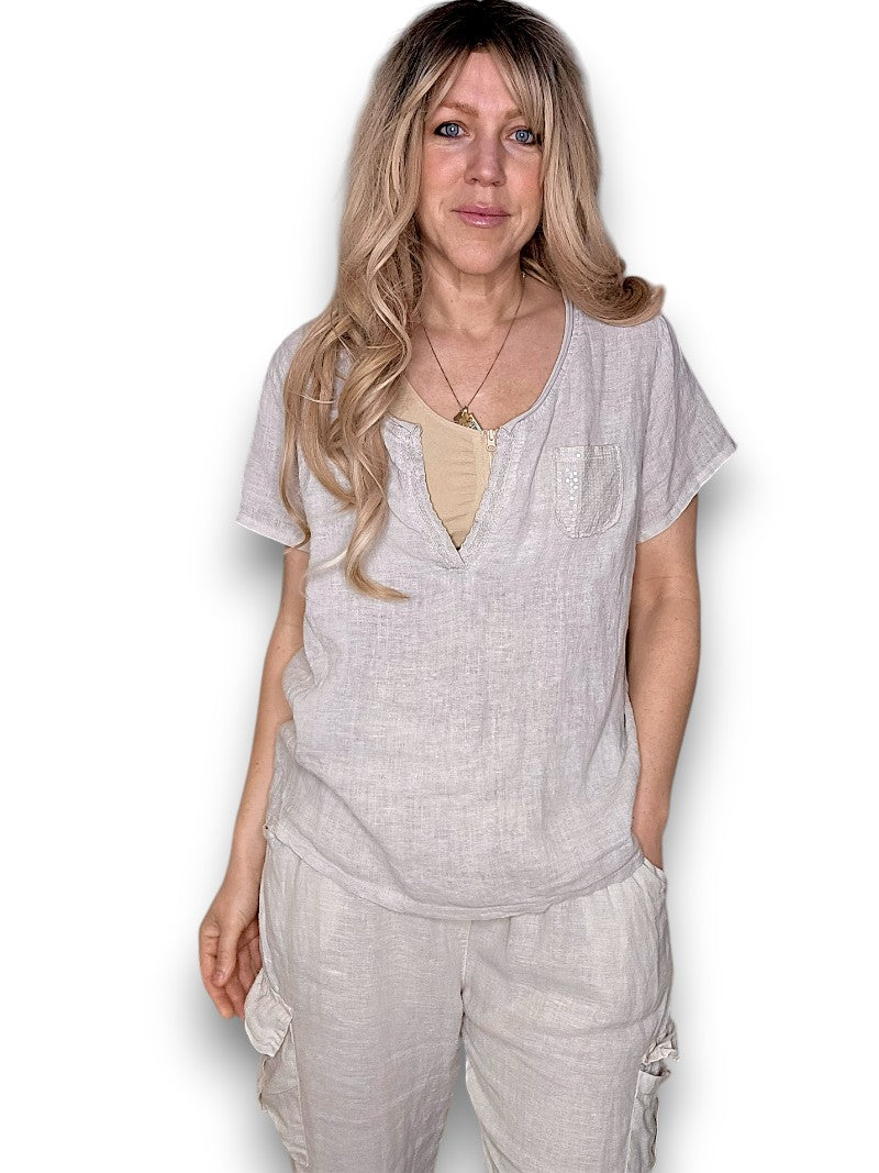 Helga May: Rodeo Sequin Pocket Tee - Beige