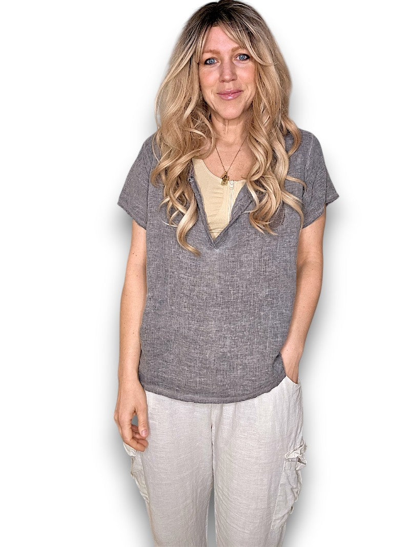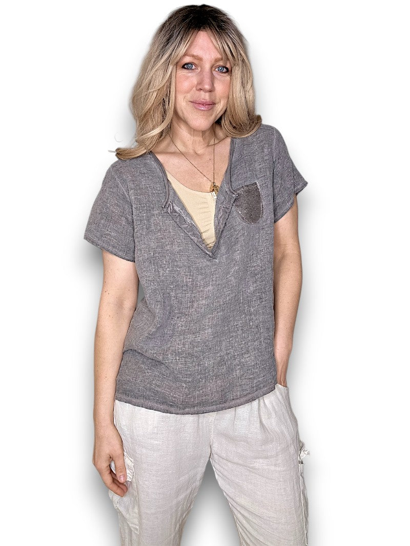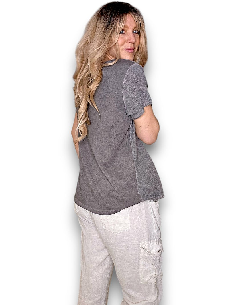 Helga May: Rodeo Sequin Pocket Tee - Pale Grey