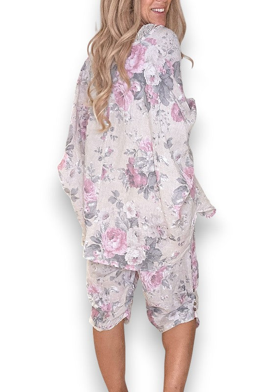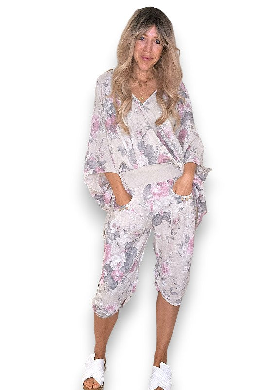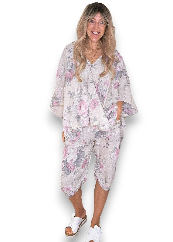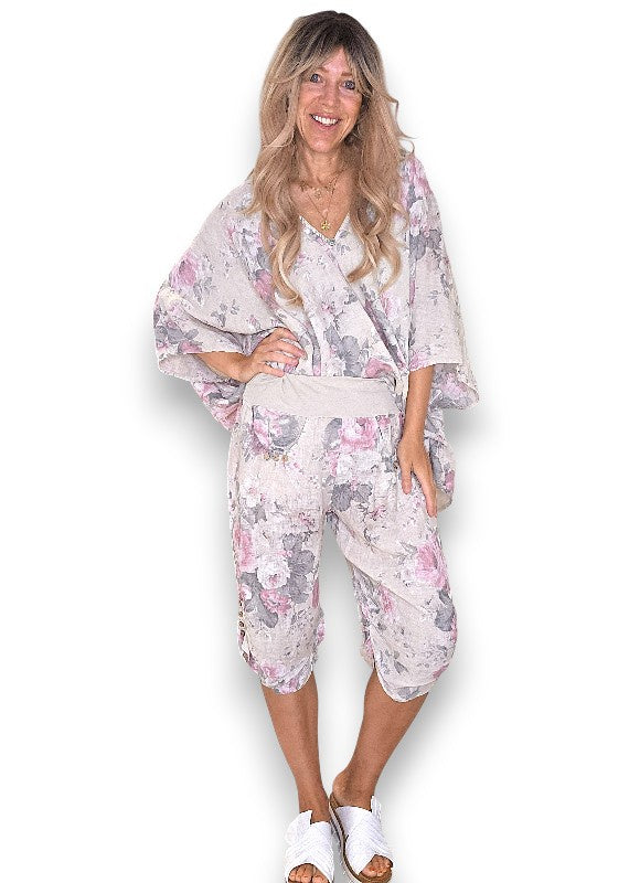 Helga May: Scarlett Rose Linen Capri Pants - Beige