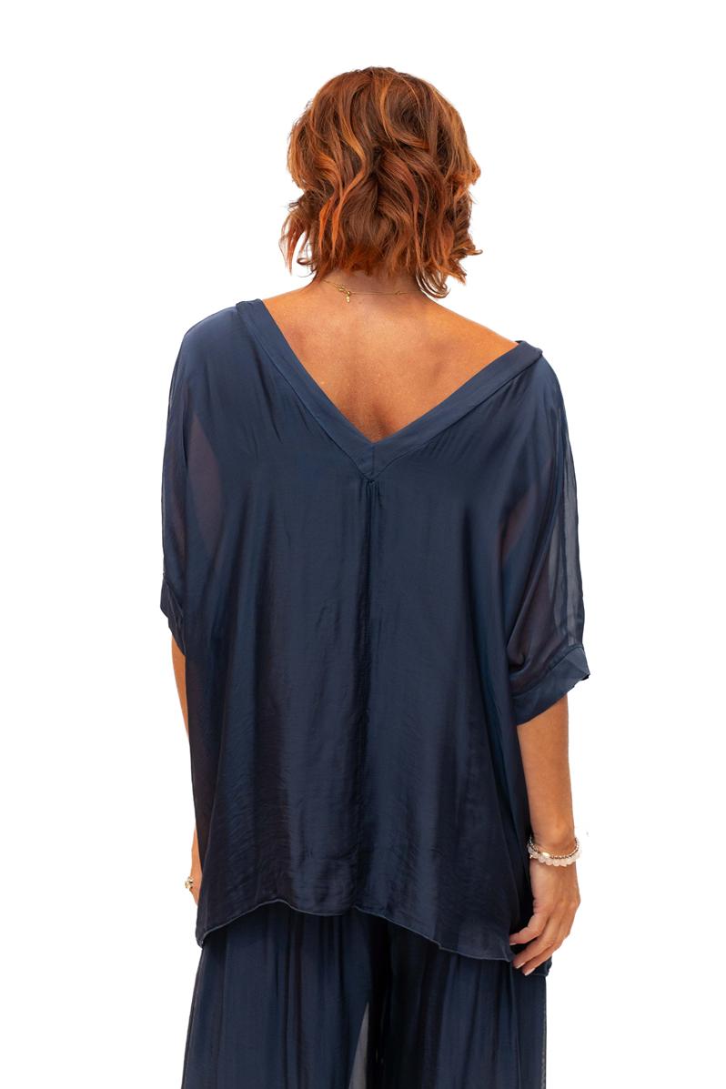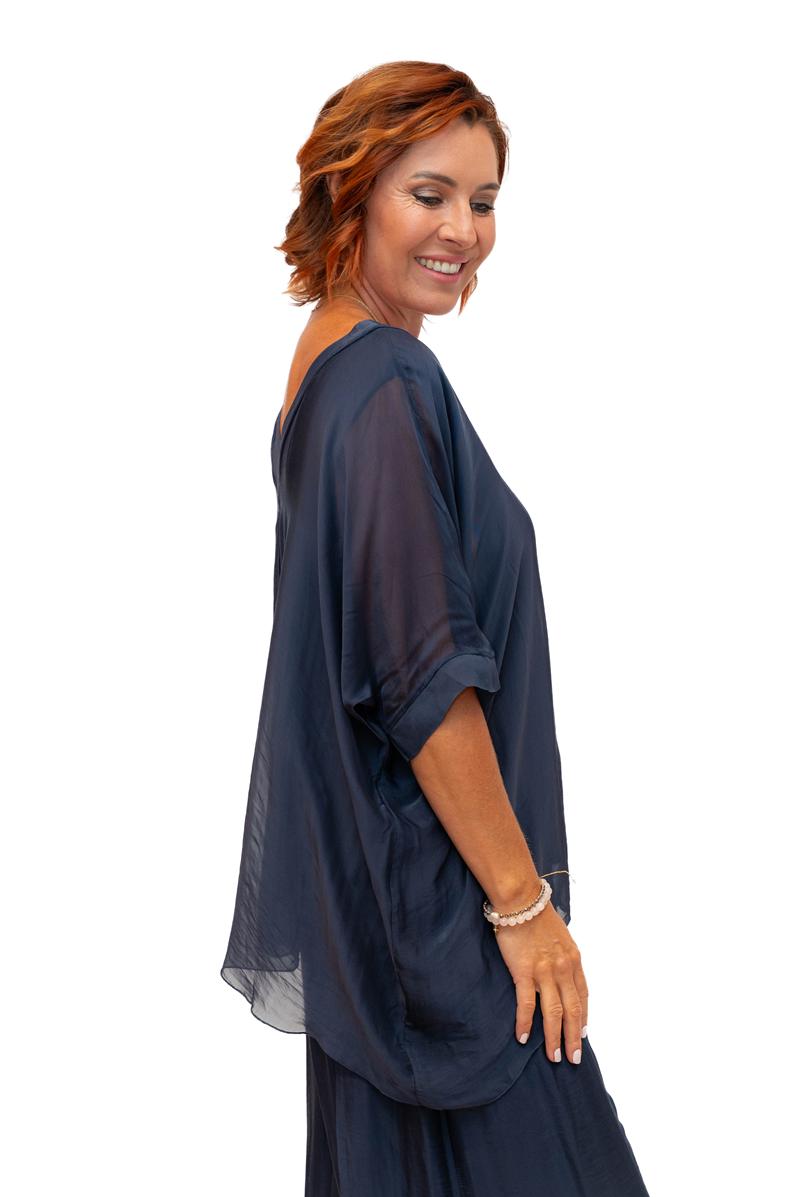 The Italian Closet: Jemima Silk Batwing - Navy